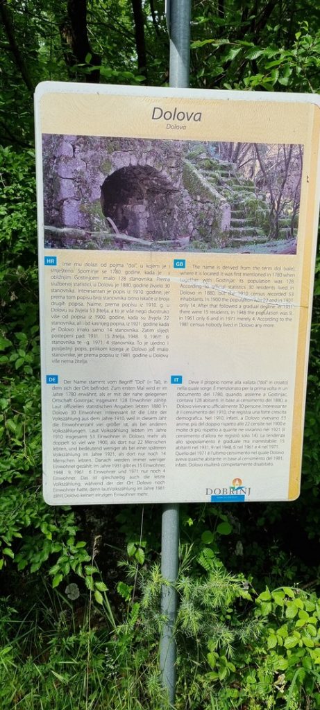 Zanimiva atrakcija na Krku so ostanki mesta Dolovo, ki se nahajajo sredi gozda blizu Dobrinja. Po podatkih popisov prebivalstva, ki so predstavljeni na tabli na poti do Dolova, se je število prebivalcev postopno nižalo približno sto let. Leta 1971 so v Dolovu živeli še štrije prebivalci, ki pa so do leta 1981 tako ali drugače zapustili to mesto. Tako je Dolovo zapuščeno že vsaj štirideset let. Stene nekaterih hiš še vedno stojijo, ampak tako kot vse ostalo postajajo del narave.
