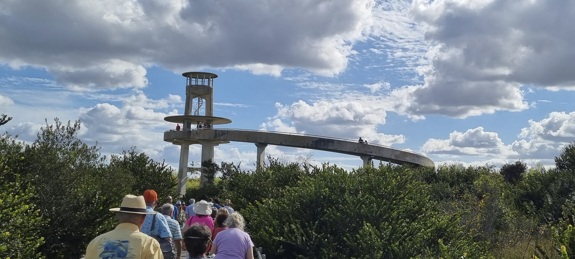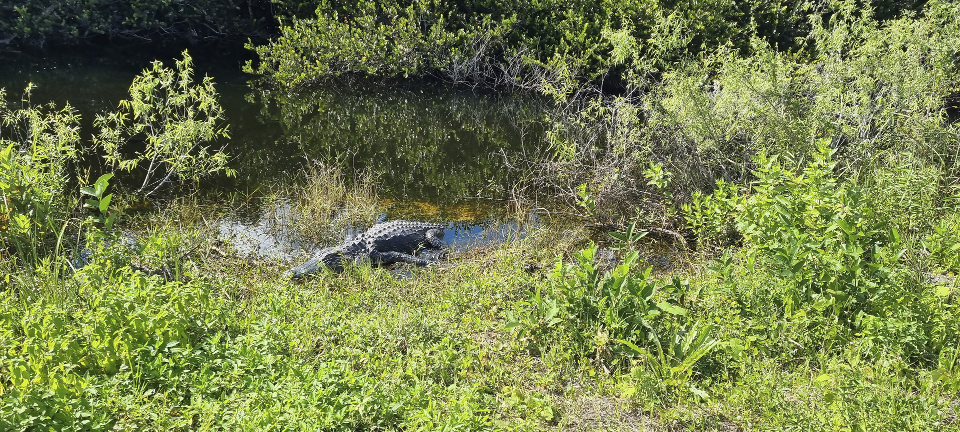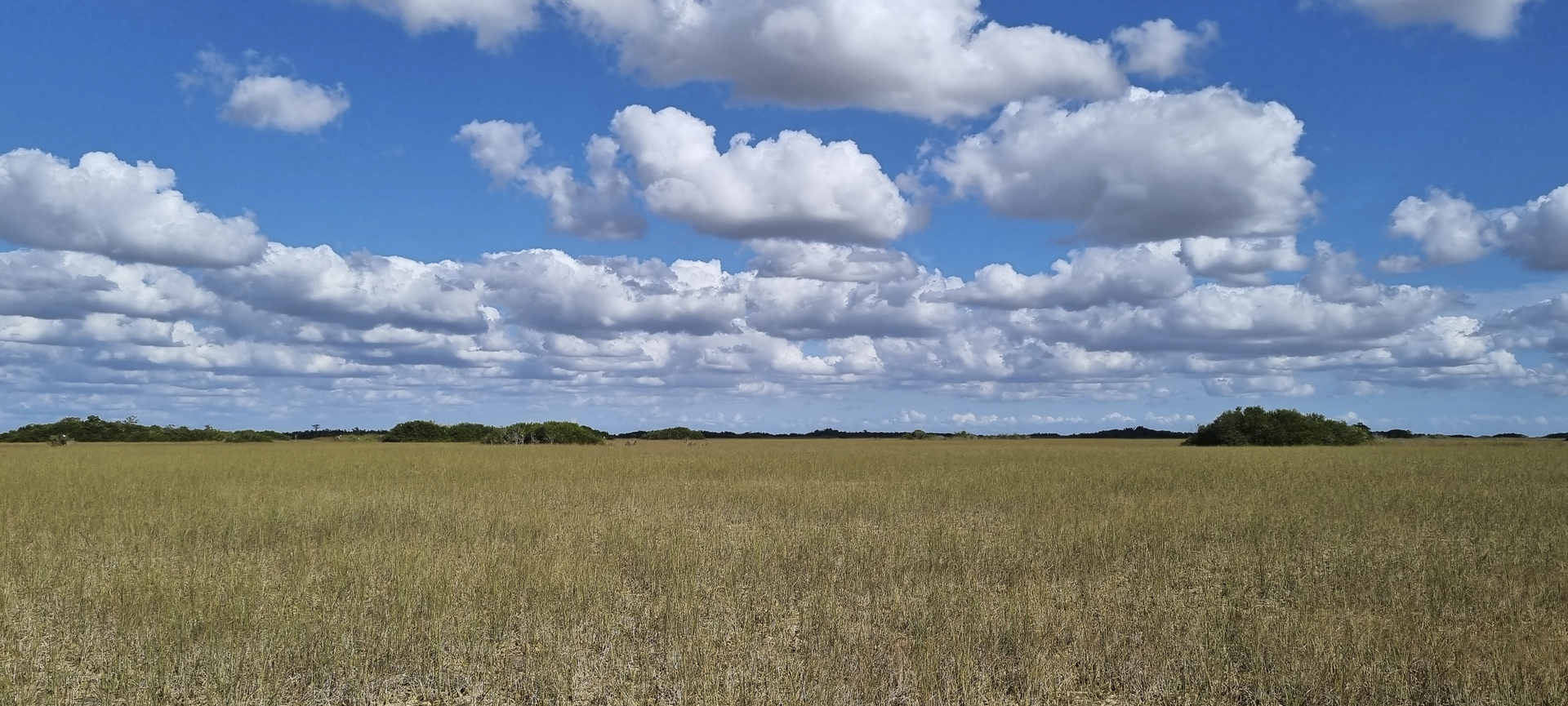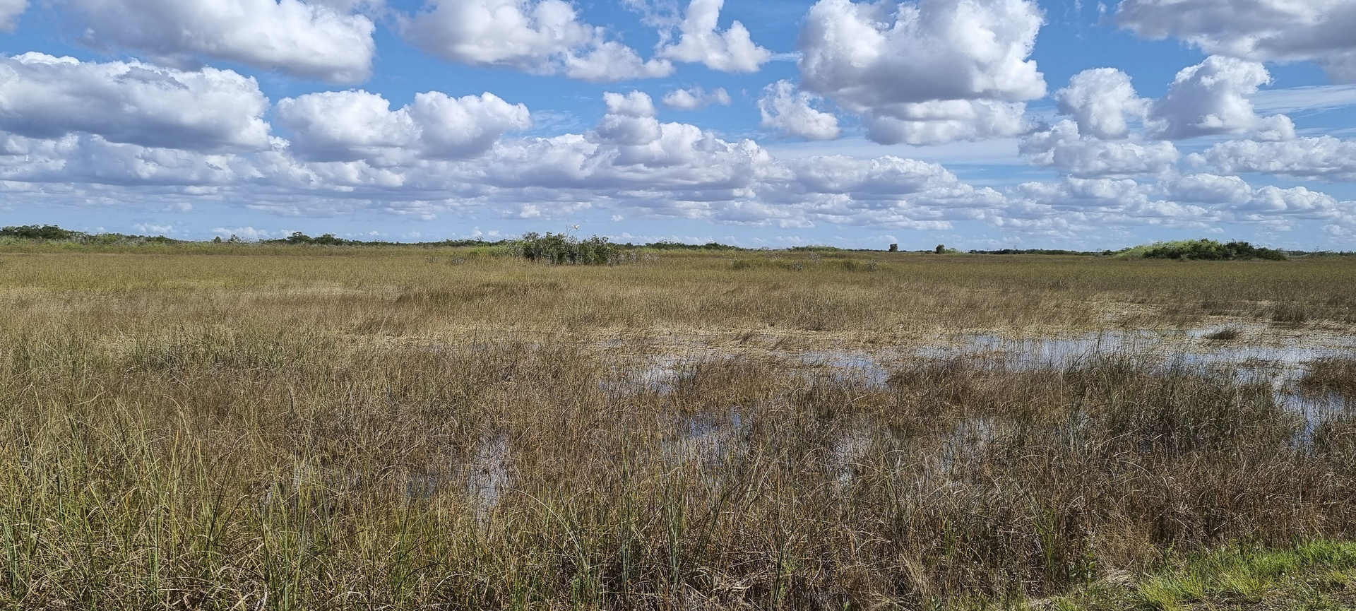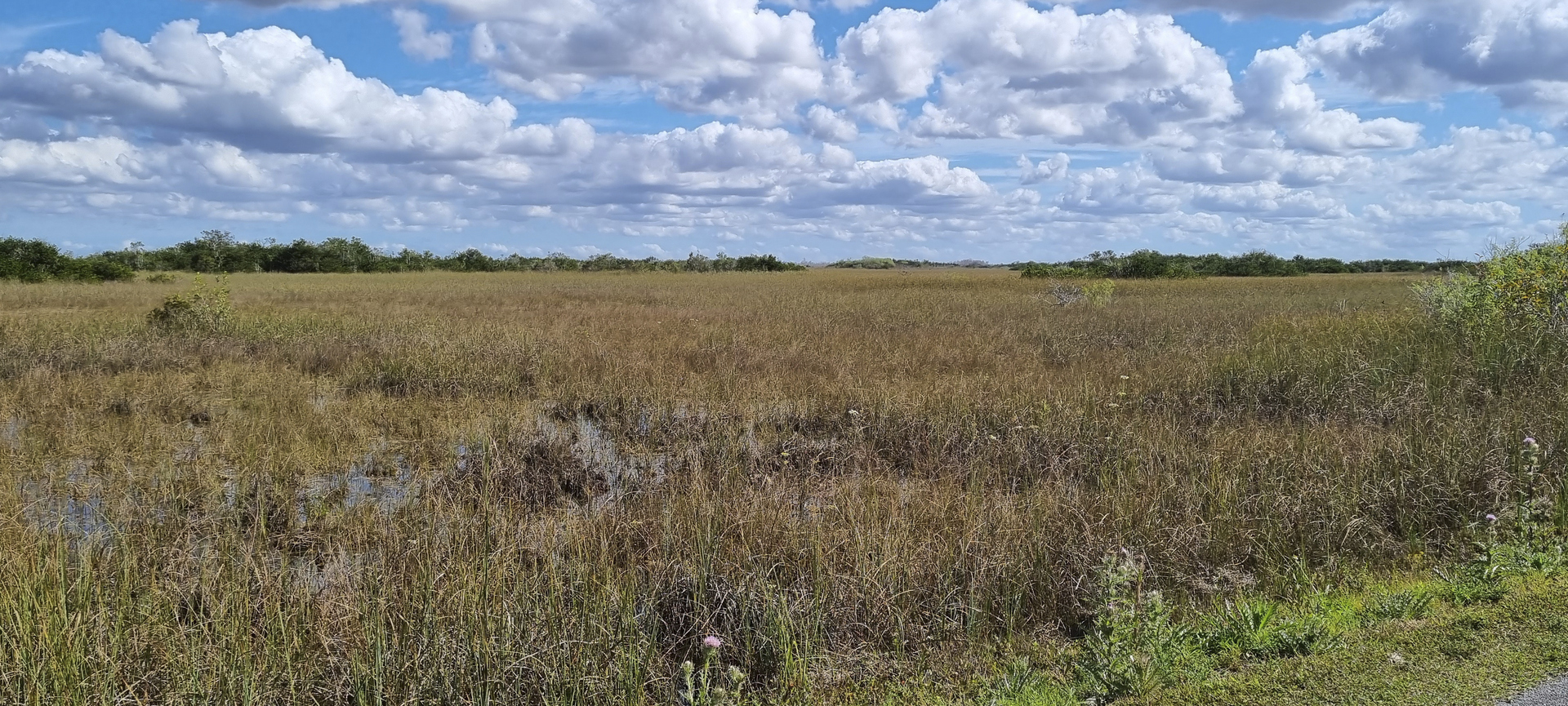 70 kilometrov vzhodno od Zalivske obale najdemo center za obiskovalce Shark Valley, kjer se lahko peš, s kolesom ali pa s turističnim vlakcem podamo enajst kilometrov v notranjost parka po asfaltirani stezi. Ob stezi teče potok, ki je poln aligatorjev, sicer pa nas obdaja prostrana prerija, kjer raste trava rezika (sawgrass), ki je značilna za Everglades. Večino leta je prerija poplavljena, le pozimi se za nekaj mesecev reka umakne toliko, da se vidi do tal. V Evergladesu višinska razlika le kakšnih deset centimetrov močno vpliva na to, katere rastline na določeni lokaciji uspevajo: monotonost prerije razbijejo otoki dreves, ki uspevajo le zato, ker so tla malo višja. Ravno ti otoki so ameriškim staroselcem omogočili preživetje v tako neprijaznem okolju, saj je večina Evergladesa poleti sicer poplavljena. Na teh otokih najdemo drevesa tropskih vrst, kot sta mahagoni in gumbo limbo, pa tudi nam bolj poznane vrste kot na primer hrast in javor.