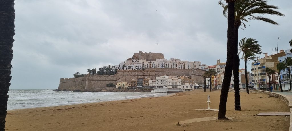 Najina prva točka je bil grad Peñíscola, ki se nahaja v pokrajini Castellon približno na pol poti med Barcelono in Valencijo. Ime izhaja iz latinske besede peninsula – polotok, ki odlično opiše lokacijo. Grad je namreč s skoraj vseh strani obdan z morjem, s celino ga povezuje le ozek pas kopnega. Mesto so naselili že Iberci v 1. ali 2. stoletju pred našim štetjem, ni pa znano, kdaj je bil prvič zgrajen grad: prva omemba muslimanskega gradu je bila v 11. stoletju našega štetja, prvič pa je bil podrobno opisan šele v 13. stoletju. Leta 1294 so katoliški Templjarji zavzeli muslimanski grad, ga porušili in na isti lokaciji zgradili nov grad. Z gradnjo so zaključili leta 1307, ta grad pa stoji še danes. Katoliški protipapež Benedikt XIII. je v gradu živel od leta 1417 pa do svoje smrti v letu 1423.