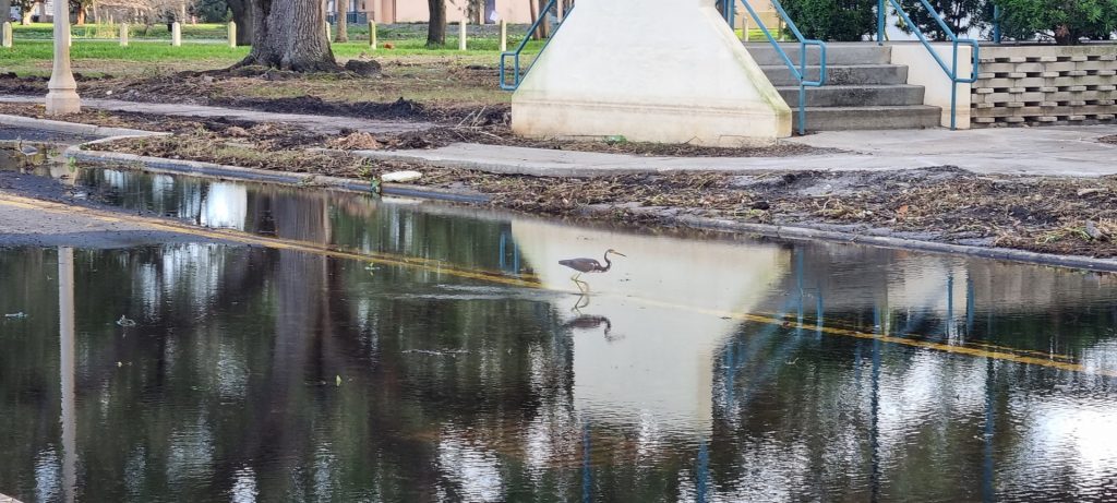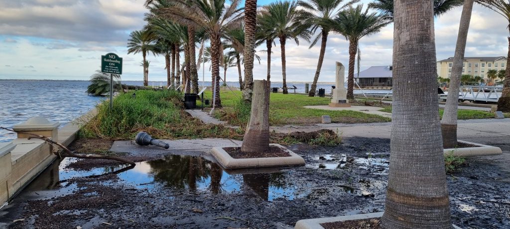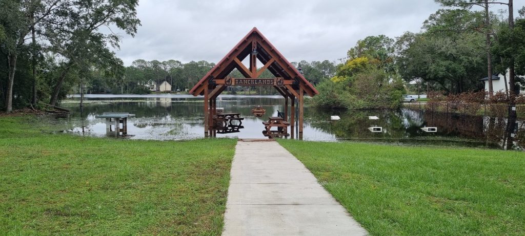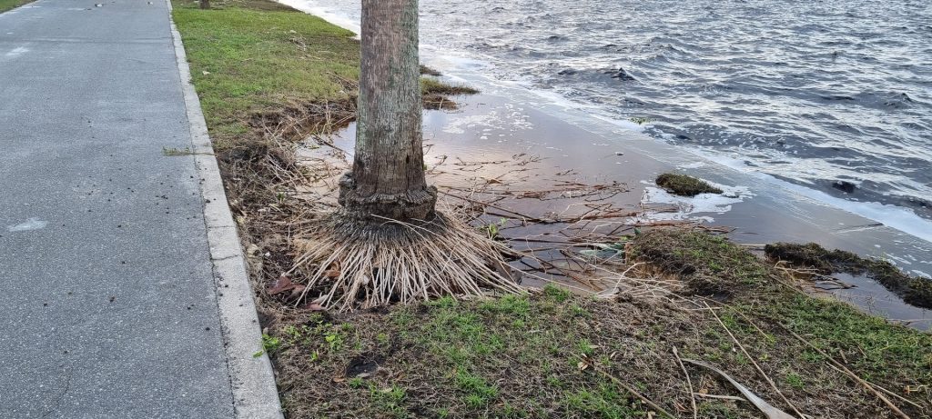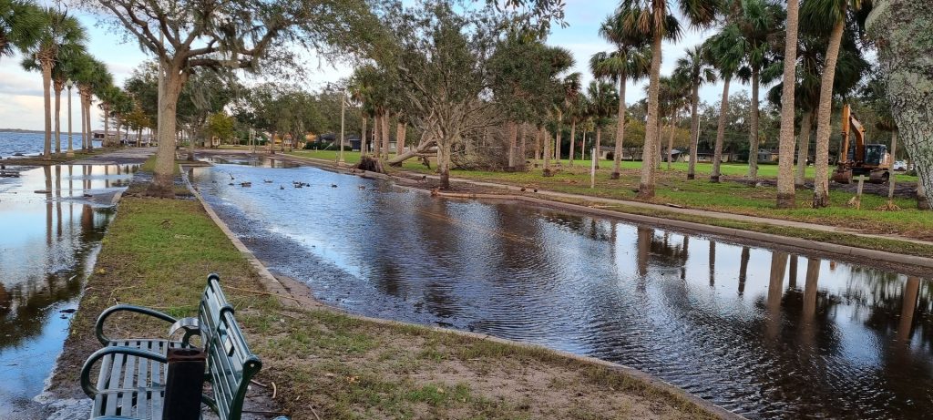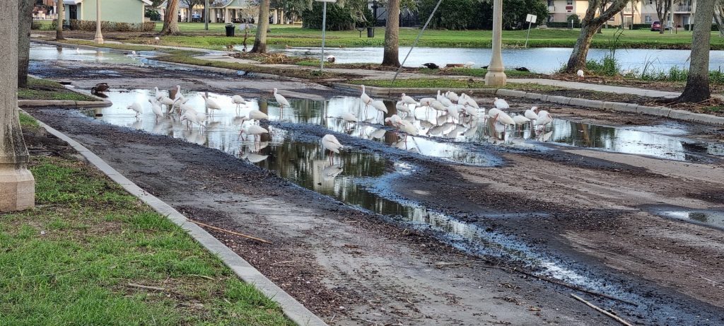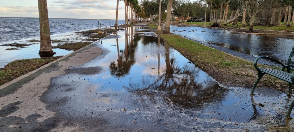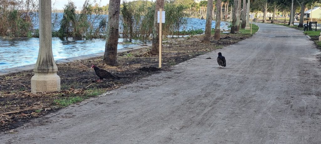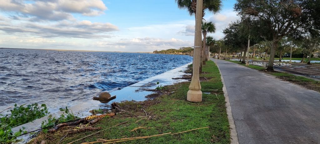 21. novembra, skoraj 8 tednov po tem, ko je Ian dosegel Florido, in 11 dni po prihodu Nicole, sem se sprehodil ob jezeru Monroe v Sanfordu, ki se nahaja v osrednji Floridi – od vzhodne, atlantske obale je oddaljen približno 50 km, od zahodne, zalivske obale pa 130 km, zato ga orkani običajno ne prizadenejo. Kljub temu so bile še vedno vidne posledice obeh orkanov. Na zaprtem pomolu so bila podrta drevesa, ki jih še niso uspeli odstraniti. Ceste ob jezeru so bile še vedno zaprte, ponekod so bile še vedno poplavljene. Ob vsakem valu je nekaj vode pljusknilo na blatna tla, kjer stoji drevored. Na cesto so se naselile čaplje in jastrebi. Zapuščen rdeč ford, ki je bil v času orkana parkiran ob jezeru, gotovo ni bil več v voznem stanju. Tudi park Ranchlands, ki se nahaja ob malem jezeru v bližnjem mestu Winter Springs, je bil še vedno delno pod vodo.
