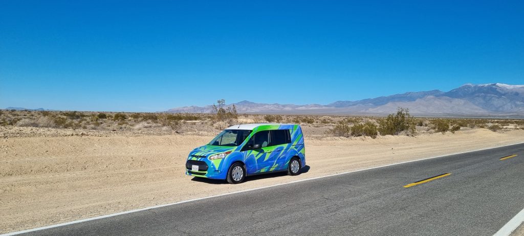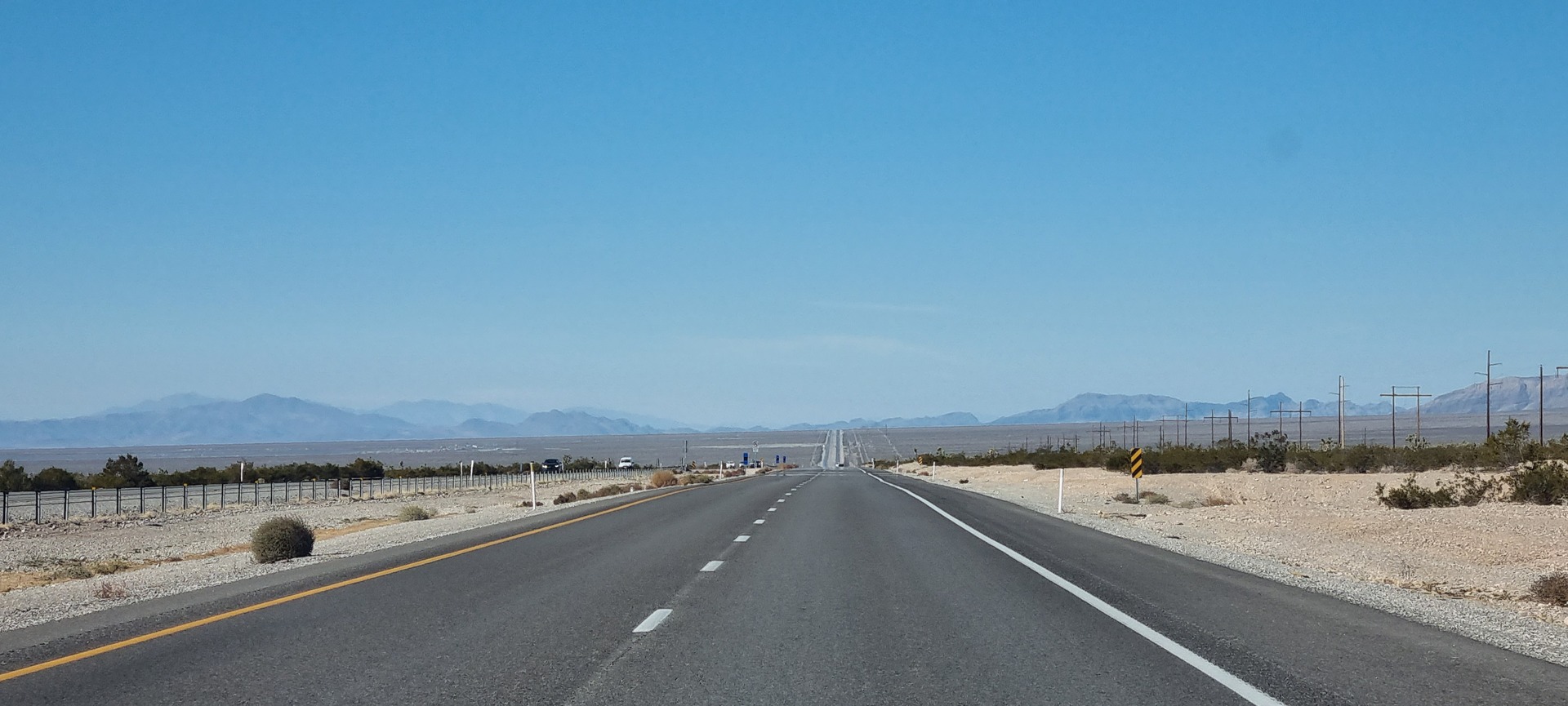 Najbližje večje letališče, preko katerega sva letela tudi midva, se nahaja v Las Vegasu v Nevadi. Tam sva najela kombi, predelan v majhen avtodom, in se odpravila na pot. Vožnja do narodnega parka nama je vzela približno dve uri in pol in naju popeljala skozi popolnoma osamljene dele Nevade, kjer je cesta vodila naravnost v ravni črti več kilometrov, okoli pa ni bilo žive duše – na najbolj osamljenem odseku ceste več kot pol ure nisva srečala niti enega samega avta.