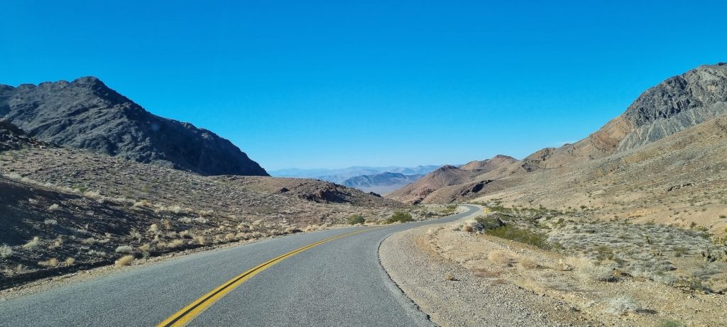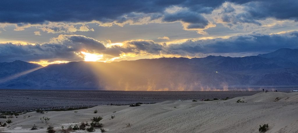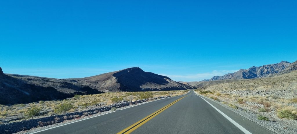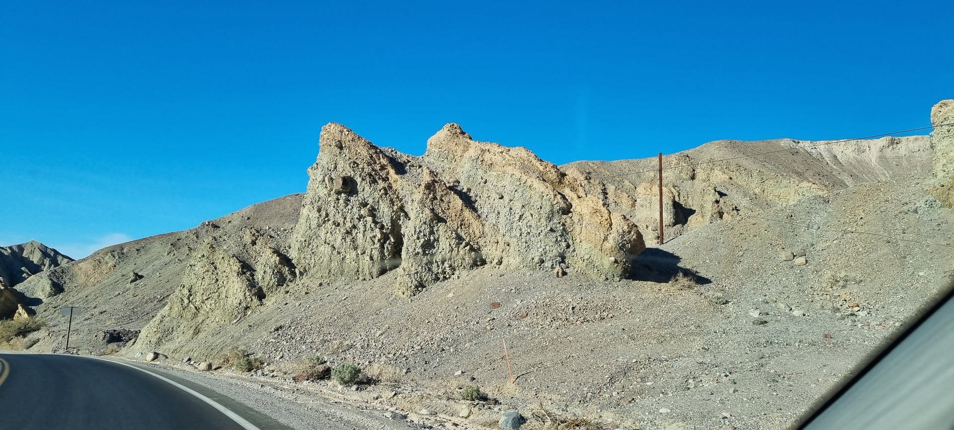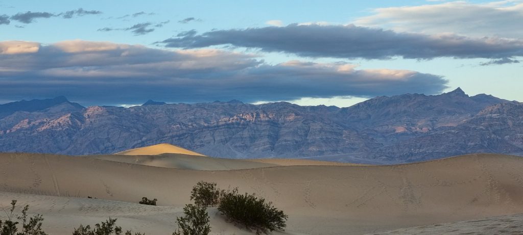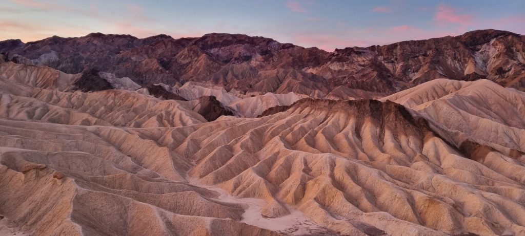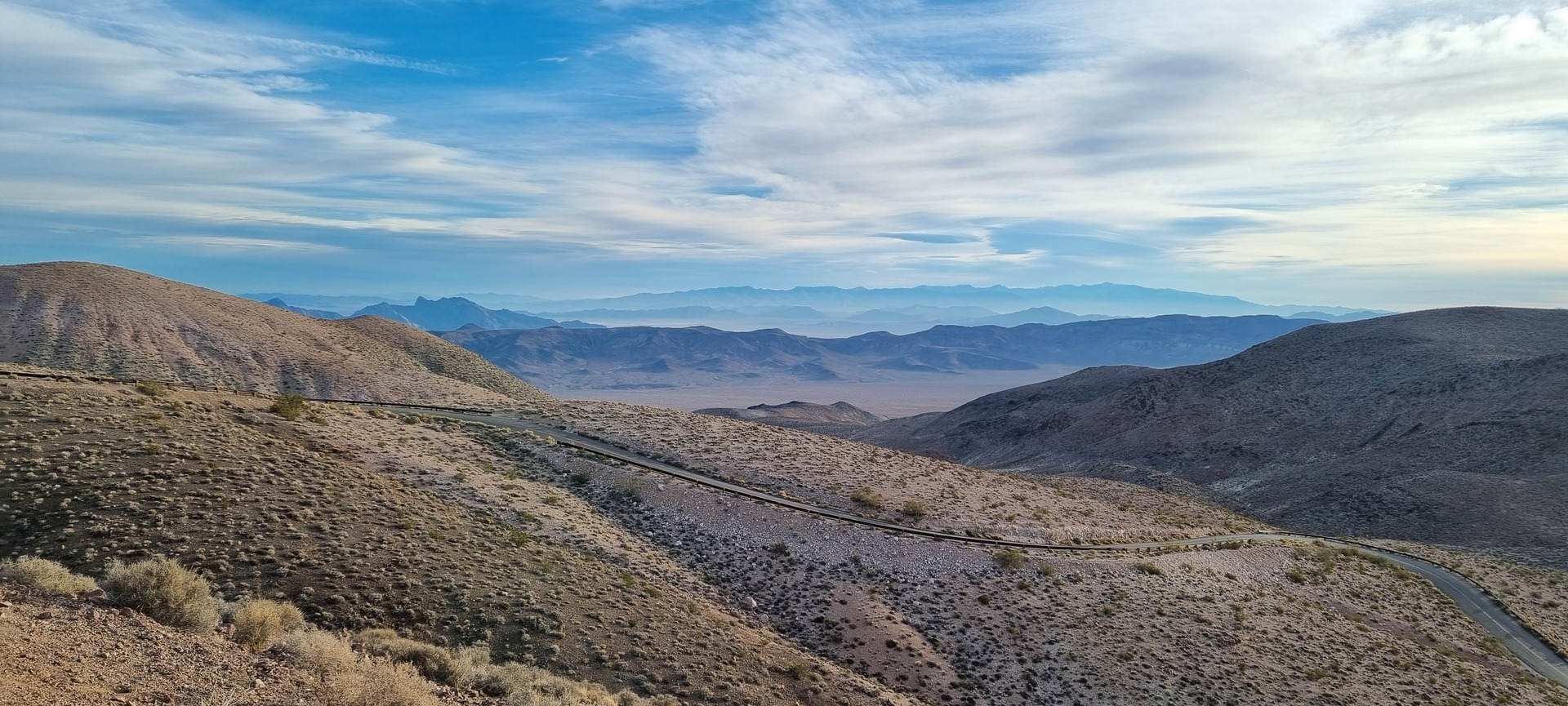 Naslednje jutro sva ujela sončni vzhod na razgledni Zabriskiejevi točki (Zabriskie Point), od koder se z višine dobrih dvesto metrov razprostira pogled na kotlino Badwater in gorovje Panamint. Pot sva nadaljevala do naslednje razgledne točke Dantejevega razgleda (Dante’s View), ki se nahaja na nadmorski višini okoli 1660 metrov in tako ponuja še mogočnejši razgled na solne ravnine in vrh Telescope Peak, ki je, kot že omenjeno, najvišja točka v parku.