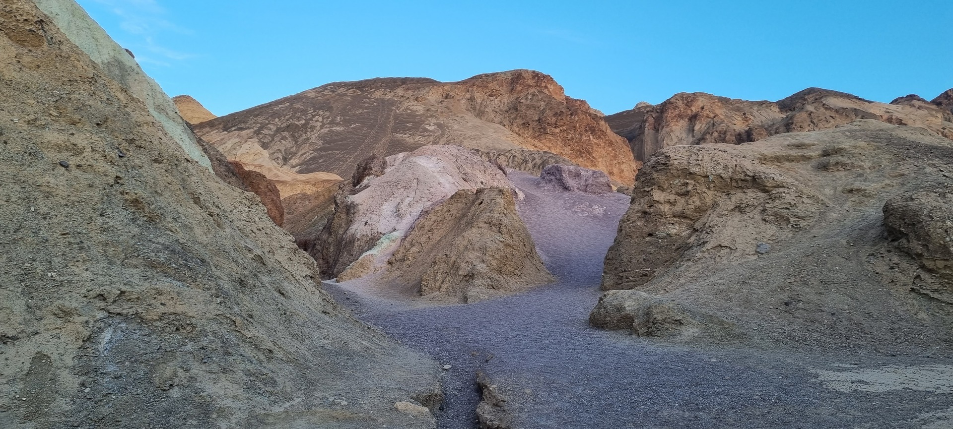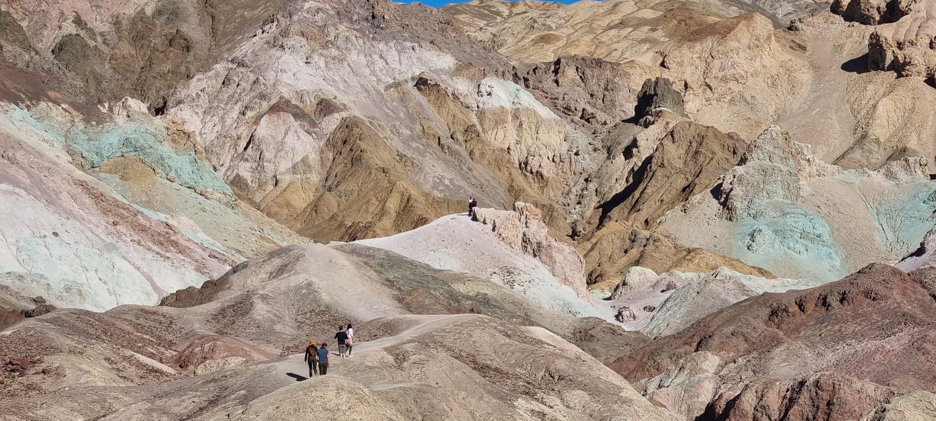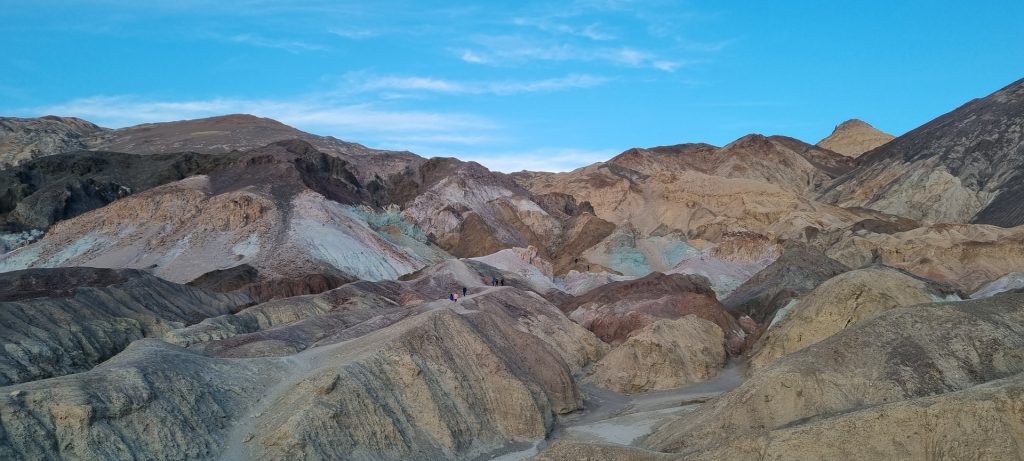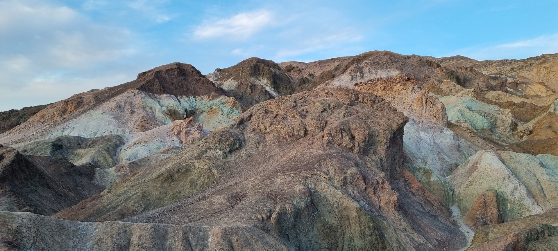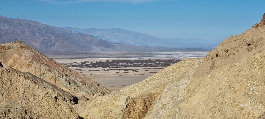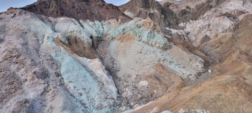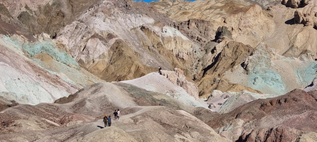 Nedaleč od Badwaterja se nahaja razgledna točka Umetnikova paleta (Artist’s Palette), ki je obdana z obarvanimi hribi. Vzrok za te barve, za katere bi na prvi pogled rekel, da ne morejo biti naravne, so vulkanske usedline, bogate s spojinami, kot so železovi oksidi in klorit. To lokacijo sva obiskala še enkrat naslednji dan, ker se je ob prvem obisku sonce prehitro skrilo za gorami.