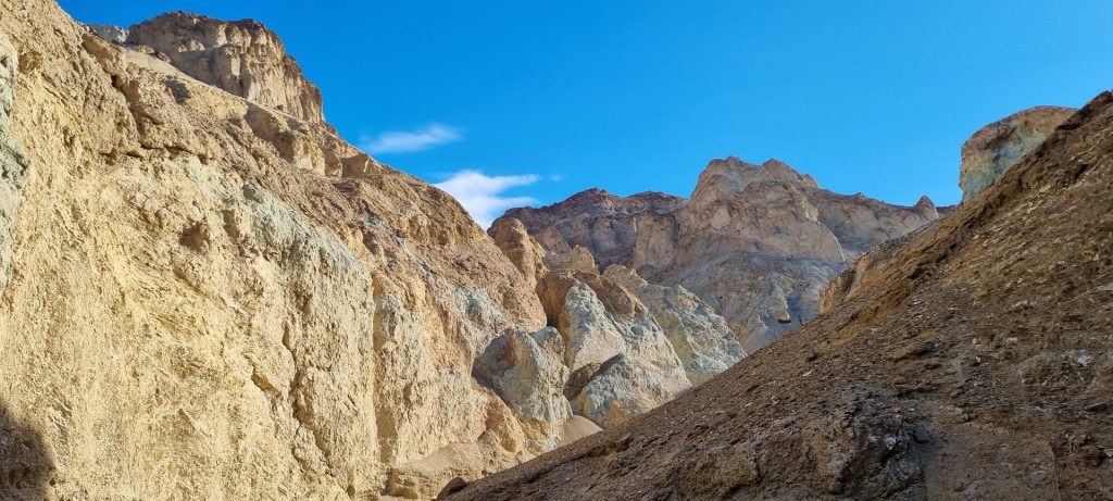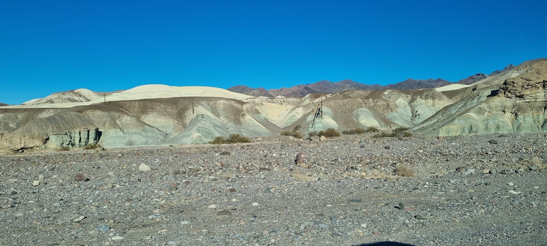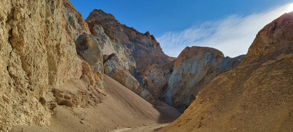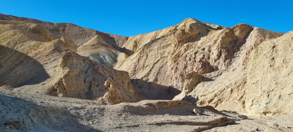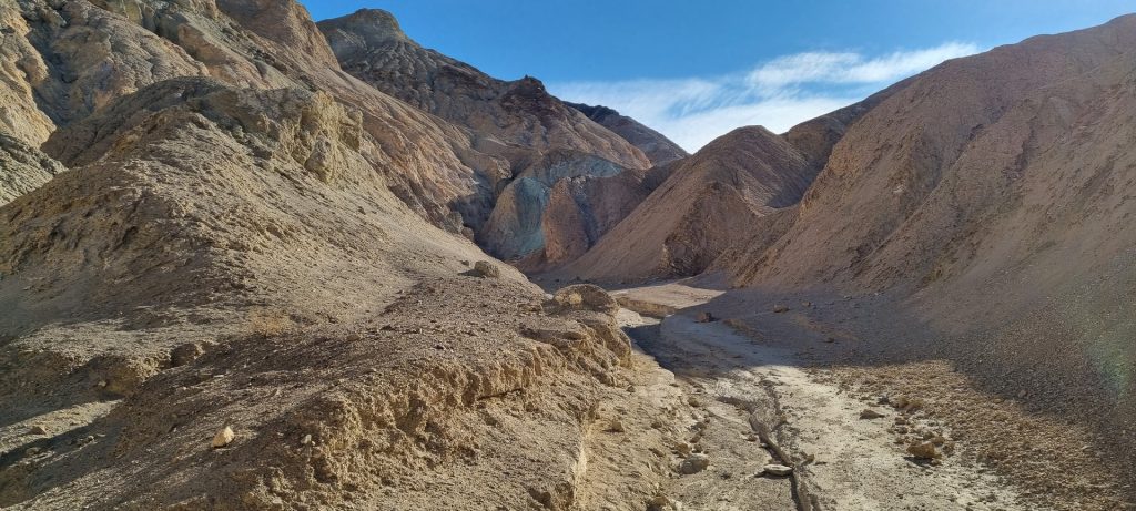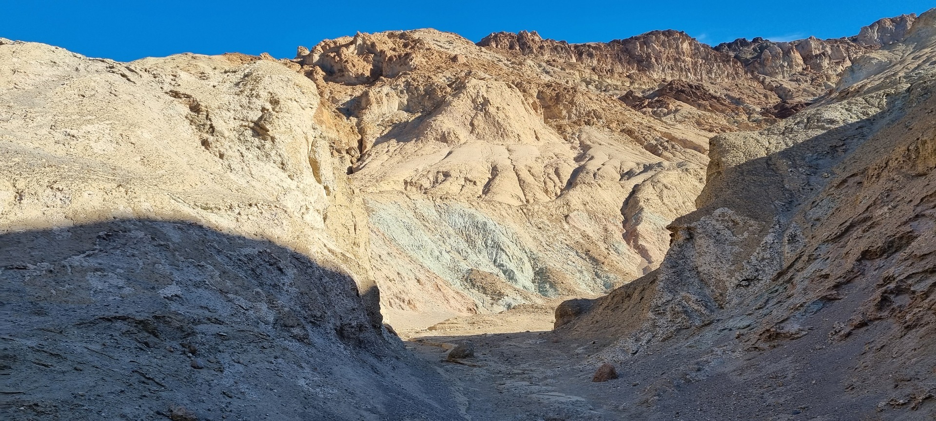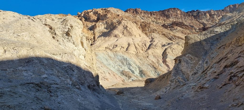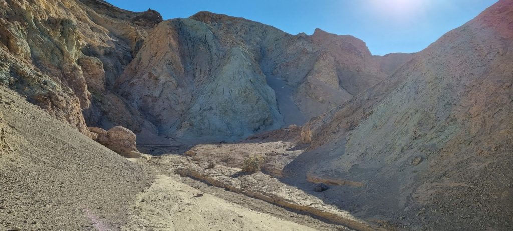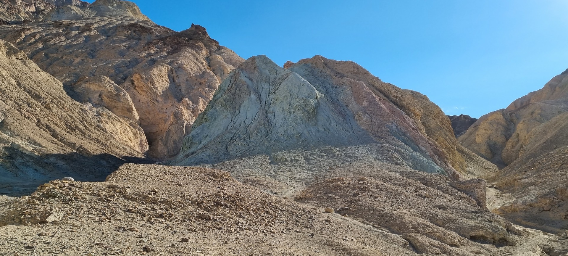 Nedaleč od Badwaterja se nahaja razgledna točka Umetnikova paleta (Artist’s Palette), ki je obdana z obarvanimi hribi. Vzrok za te barve, za katere bi na prvi pogled rekel, da ne morejo biti naravne, so vulkanske usedline, bogate s spojinami, kot so železovi oksidi in klorit. To lokacijo sva obiskala še enkrat naslednji dan, ker se je ob prvem obisku sonce prehitro skrilo za gorami.