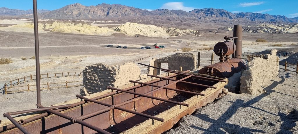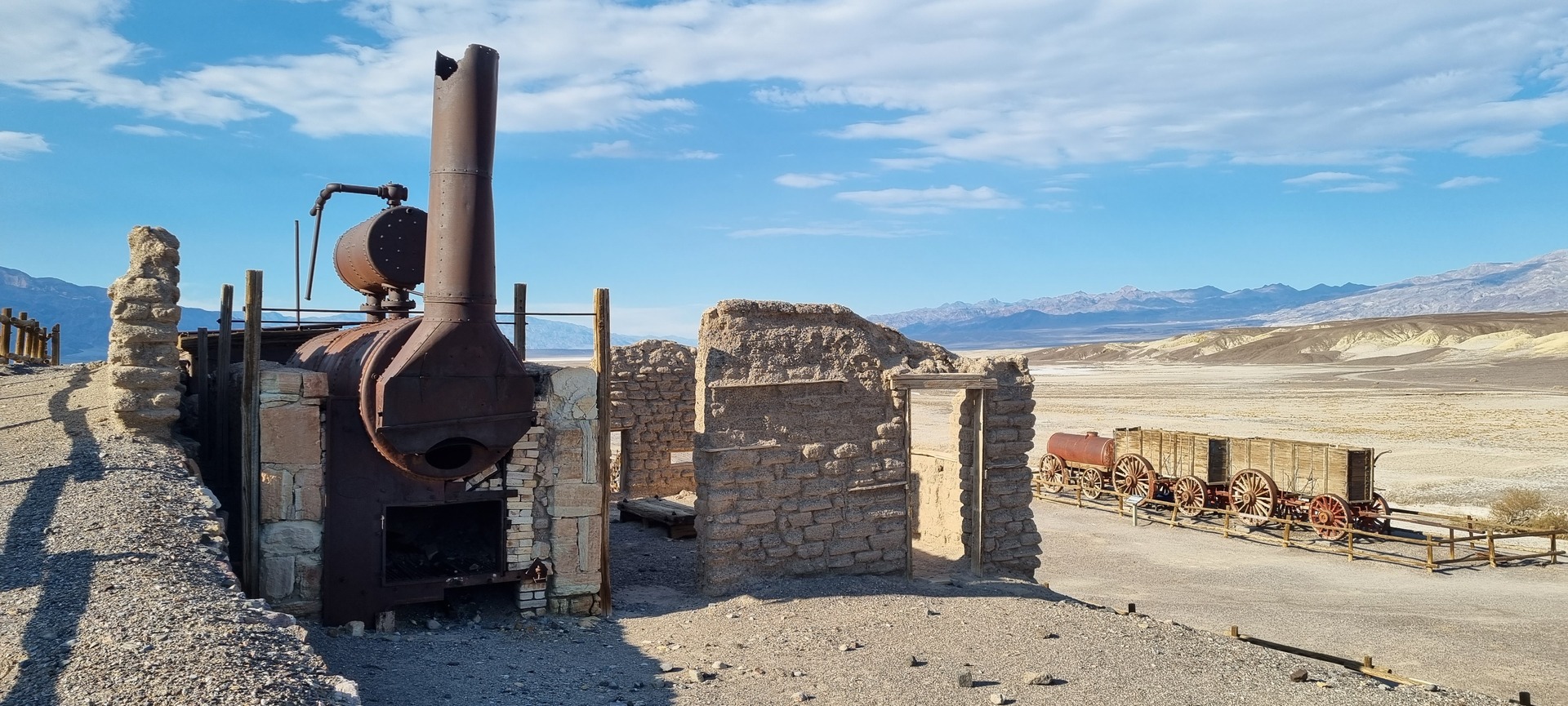 Na poti proti Stovepipe Wellsu sva se ustavila še ob Harmony Borax Worksu. Leta 1881 so v Dolini smrti odkrili boraks, ki se uporablja v čistilih in detergentih. Pozimi 1883-1884 je William T. Coleman zgradil to “tovarno”, kjer je 40 zaposlenih iz kamnin pridobivalo boraks, ki so ga nato na vozovih z 18 mulami in dvema konjema prevažali do 266 kilometrov oddaljene železnice. Harmony Borax Works je deloval le pet let, saj je leta 1888 Colemanov imperij propadel.