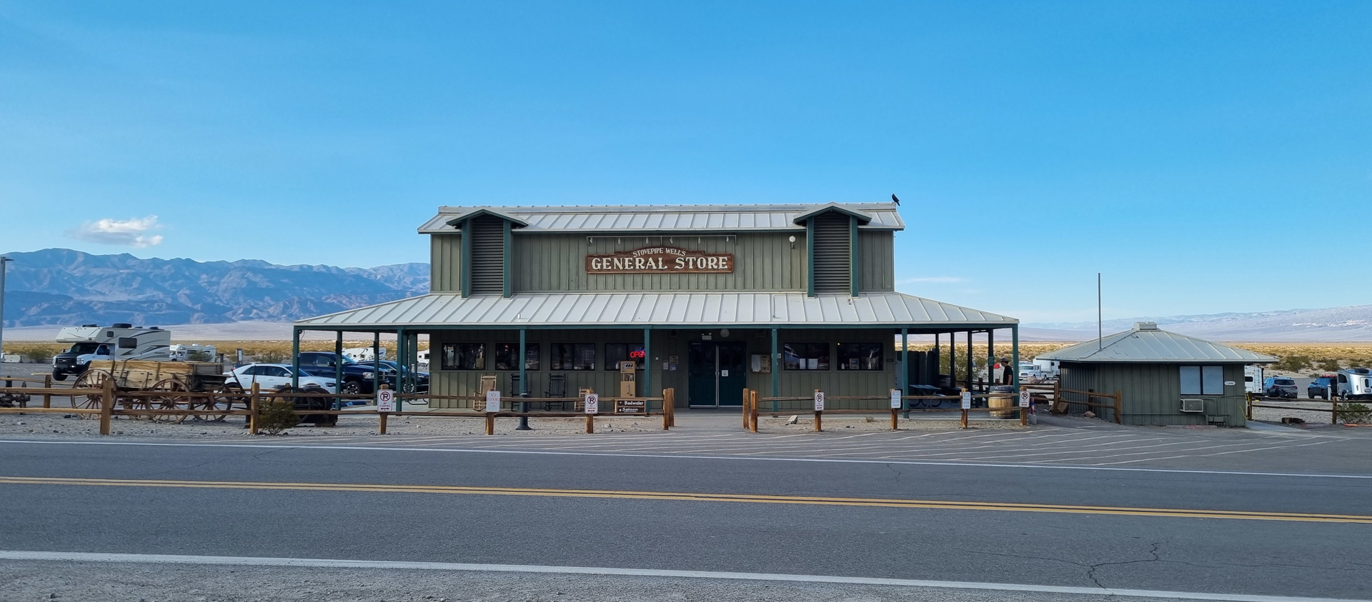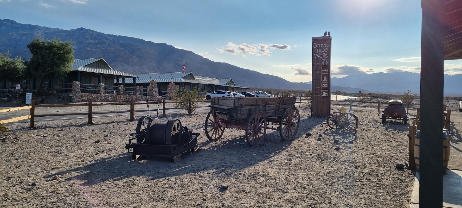 Nato sva se ustavila v Stovepipe Wellsu, kjer se nahaja eden od nastanitvenih obratov v Dolini smrti. Ogledala sva si trgovino, kjer se da kupiti nekaj hrane in drugih potrebščin, pa seveda spominkov. Okoli stavb je razstavljenih tudi nekaj starih vozil, ki so se nekoč uporabljala v naselju.