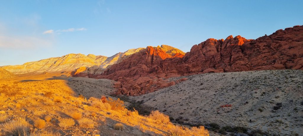 Zaščiteno območje Red Rock Canyon se nahaja le 25 kilometrov zahodno od Las Vegasa v Nevadi in je znano po hribih iz rdečih kamnin, ki so podobne tistim v Dolini ognja. Ker se nahaja v bližini Las Vegasa, je zelo priljubljena destinacija za obiskovalce mesta greha. Po dolini skozi zaščiteno območje vodi 21 kilometrov dolga enosmerna cesta, ki obiskovalcem omogoča dostop do pohodniških poti.