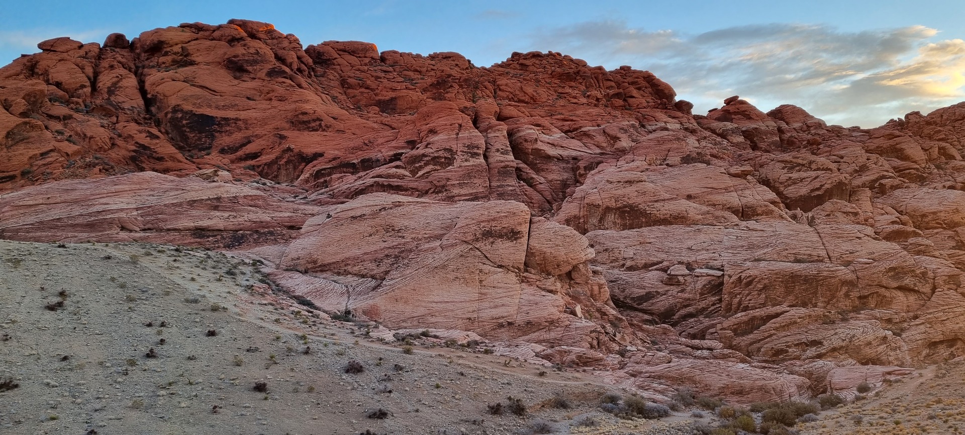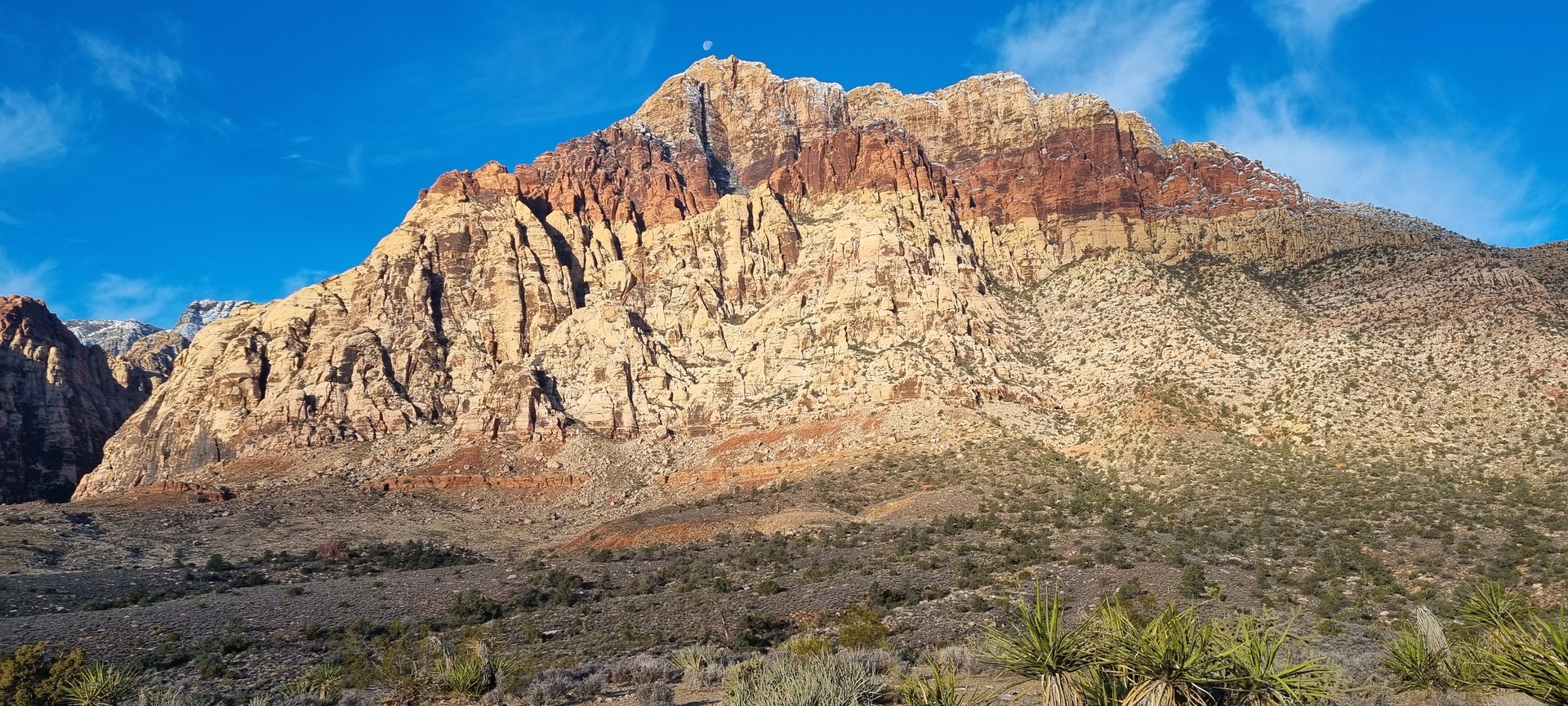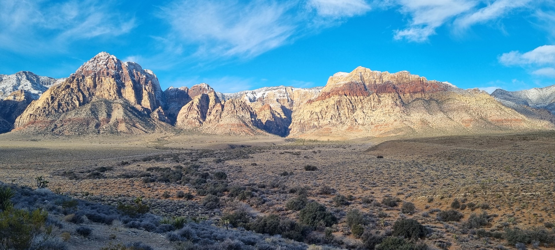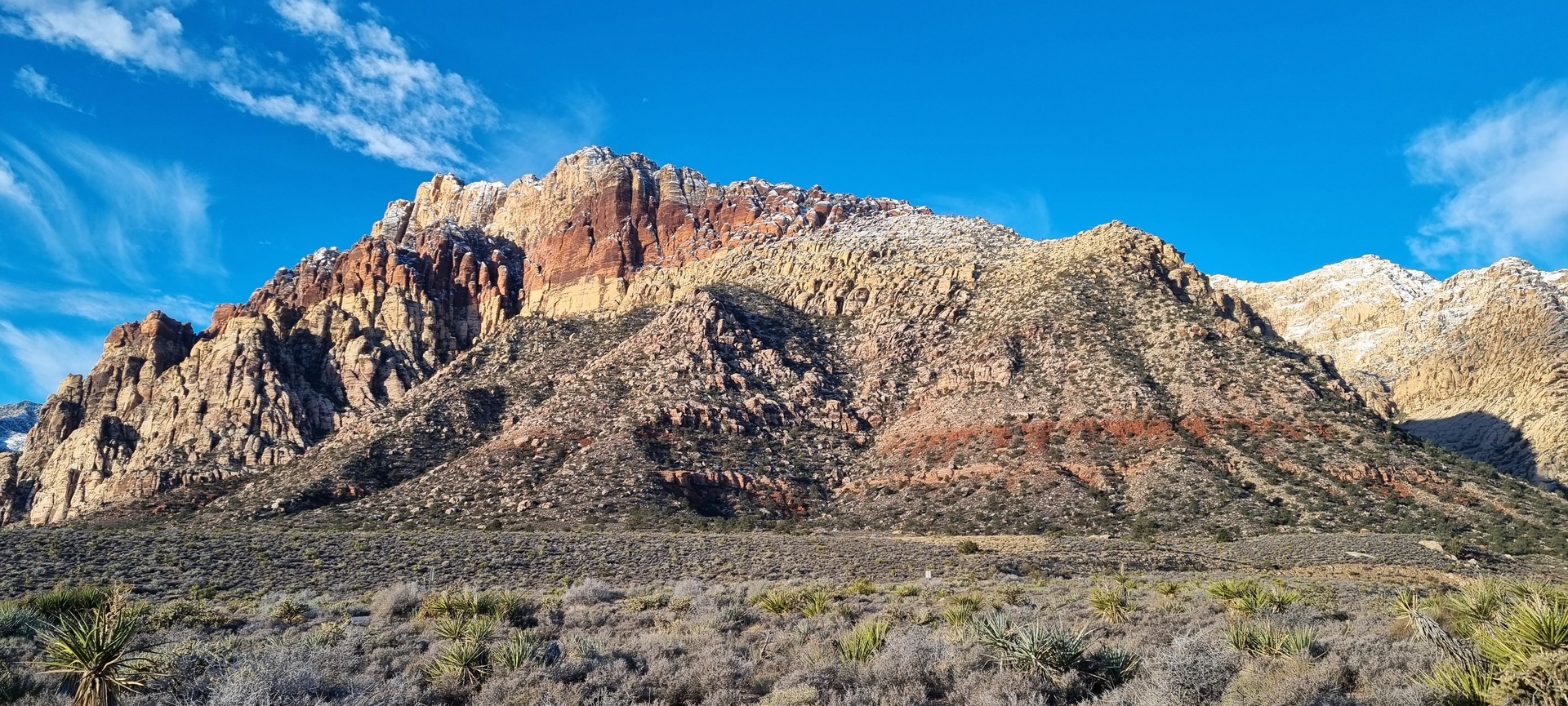 V noči, preden sva obiskala Red Rock Canyon, je Las Vegas z okolico dočakal nekaj dežja, temperature pa so se spustile blizu ničle. V hribih, od katerih se jih nekaj dviga na več kot 2000 metrov nadmorske višine, so se temperature spustile pod ledišče, vrhovi pa so bili zjutraj prekriti z nadpovprečno količino snega. Red Rock Canyon sva obiskala zgodaj zjutraj – za obiskovalce naj bi bil odprt od šestih zjutraj, midva pa sva prišla do vhoda okoli pol sedmih. Zaradi padavin in nizkih temperatur pa še ni bil odprt, ker so pregledovali cesto, da ne bi bilo slučajno preveč poledice, da bi lahko obiskovalcem omogočili varen vstop. Zapornico so dvignili okoli 6:45 in tako sva bila prva, ki sva ta dan z avtom vstopila v Red Rock Canyon.